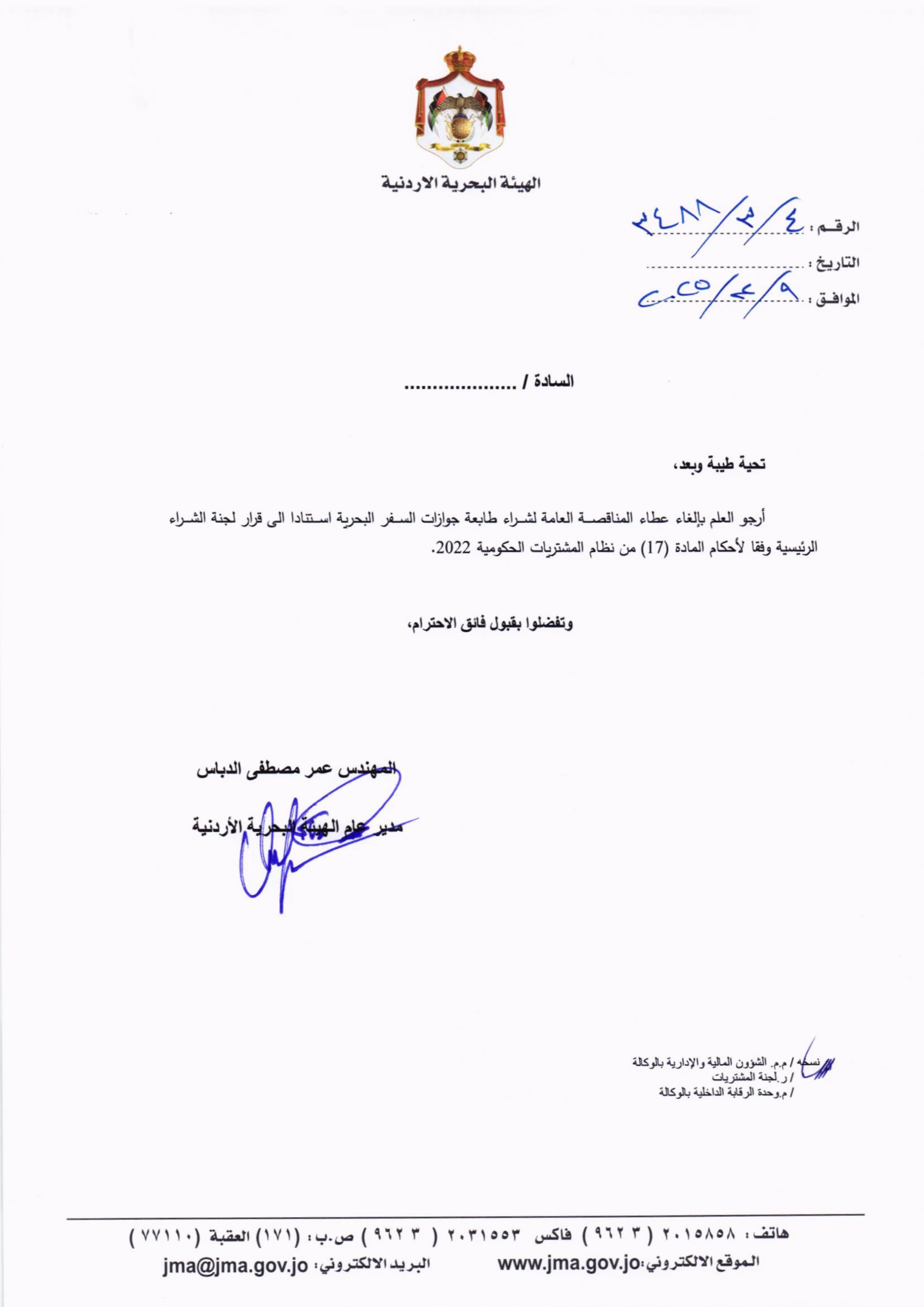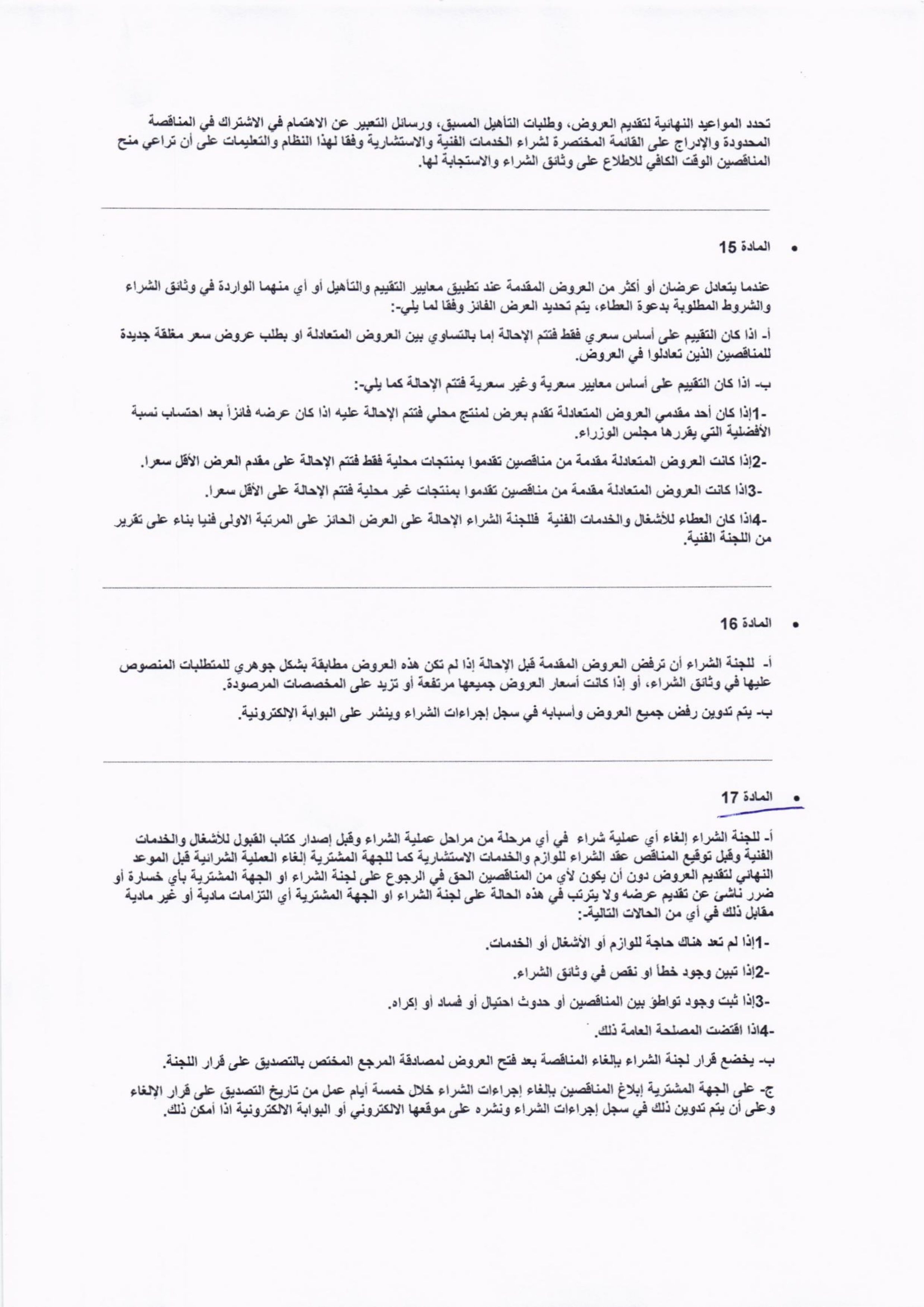الغاء عطاء المناقصة العامة لشراء طابعة جوازات السفر استنادا لقرار لجنة الشراء الرئيسية