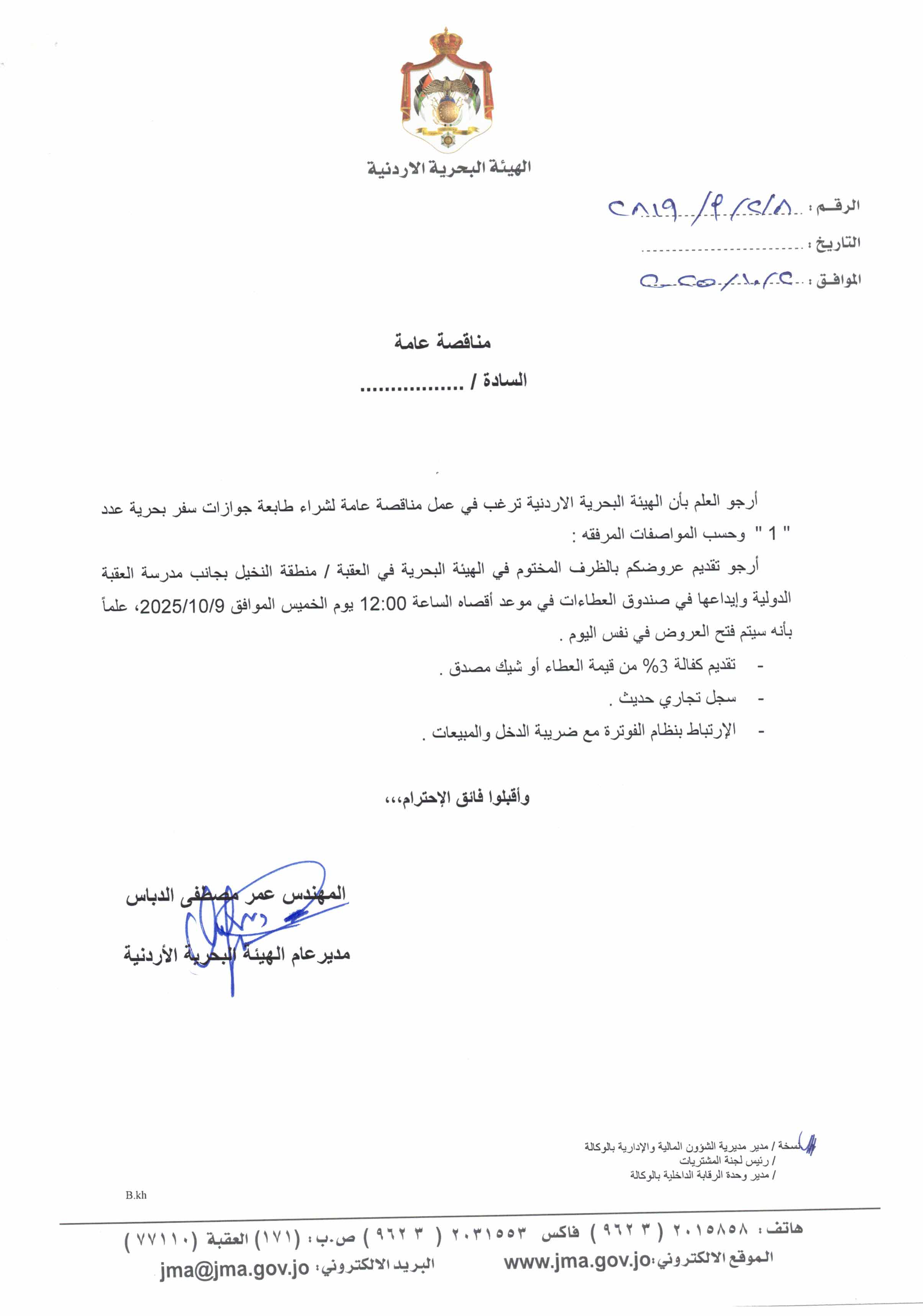 2025-10-2: مناقصة عامة لشراء طابعة جوازات بحرية عدد 1
